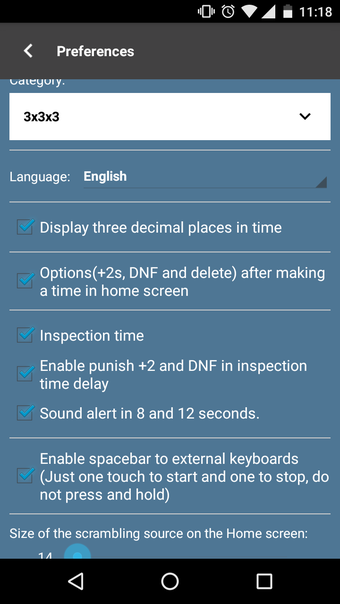 The app allows you to add your own categories and cubes, and even increase the font size of the scrambler. Inspection time with an alert sound is also available, along with several averages and graphs to analyze your evolution. You can sort your times by date and time, add times manually, and even share your times with others. The app also has a last session feature that allows you to review your most recent times. Additionally, you can view screen championships from around the world and export/import all your times.